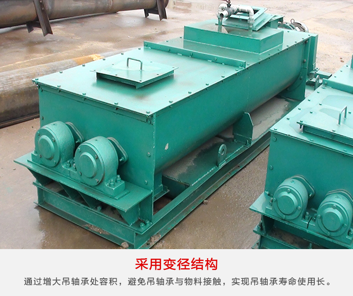 雙軸螺旋輸送機采用變徑結(jié)構(gòu),通過增大吊軸承處容積,避免吊軸承與物料接觸,實現(xiàn)吊軸承壽命可達(dá)到兩年以上。