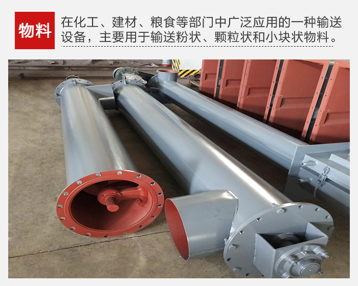 1、螺旋輸送機(jī)是在化工、建材、糧食等部門(mén)中廣泛應(yīng)用的一種輸送設(shè)備,主要用于輸送粉狀、顆粒狀和小塊狀物料。它不適宜輸送易變質(zhì)的、粘性的和易結(jié)塊的物料。