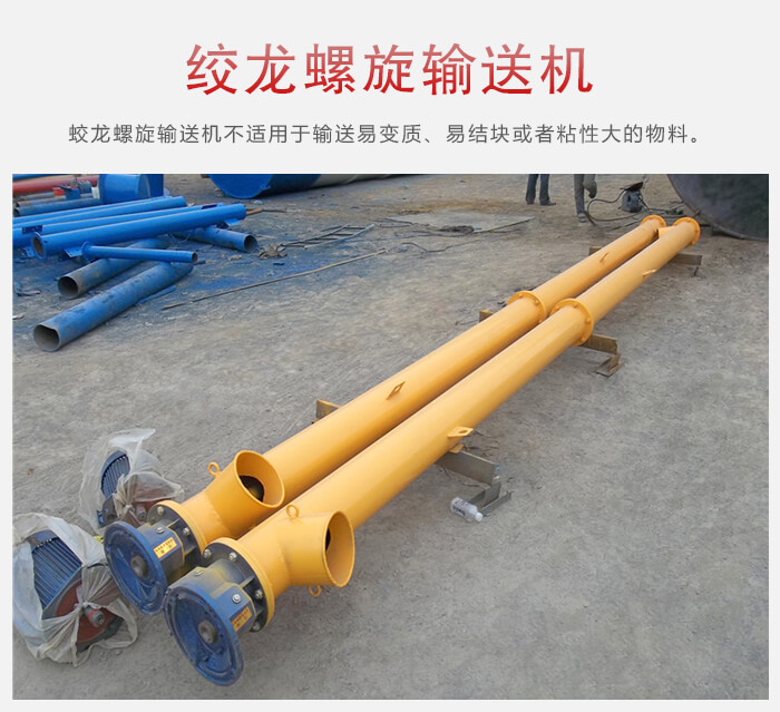 2.適用物料絞龍輸送機適用于水平或傾斜輸送粉狀、粒狀以及小塊狀物料,一般物料的溫度應小于200℃,它不適用于輸送易變質、易結塊或者粘性大的物料。