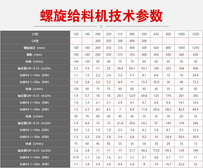 主要包括輸送帶寬度、板條寬度、料斗容積、管道直徑和容器大小等。這些構(gòu)件尺寸都直接影響螺旋給料機的輸送能力。如螺旋輸送機管徑越大,效率也就越高。當然,并不一定就是輸送機本身才能影響效率,物料的各種性質(zhì)也都會對效率有所影響。