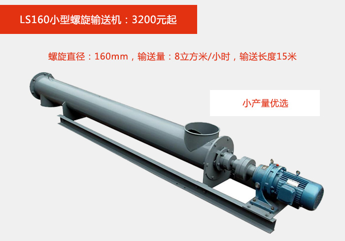 小型螺旋輸送機(jī)有114,159,160,200等4種型號(hào),不同型號(hào)對(duì)應(yīng)的輸送量,輸送長(zhǎng)度,價(jià)格自然不同;例: