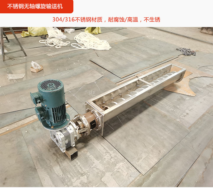 不銹鋼無(wú)軸螺旋輸送機(jī):304/316不銹鋼材質(zhì),耐腐蝕/高溫,不生銹,食品、醫(yī)藥行業(yè)專(zhuān)用。