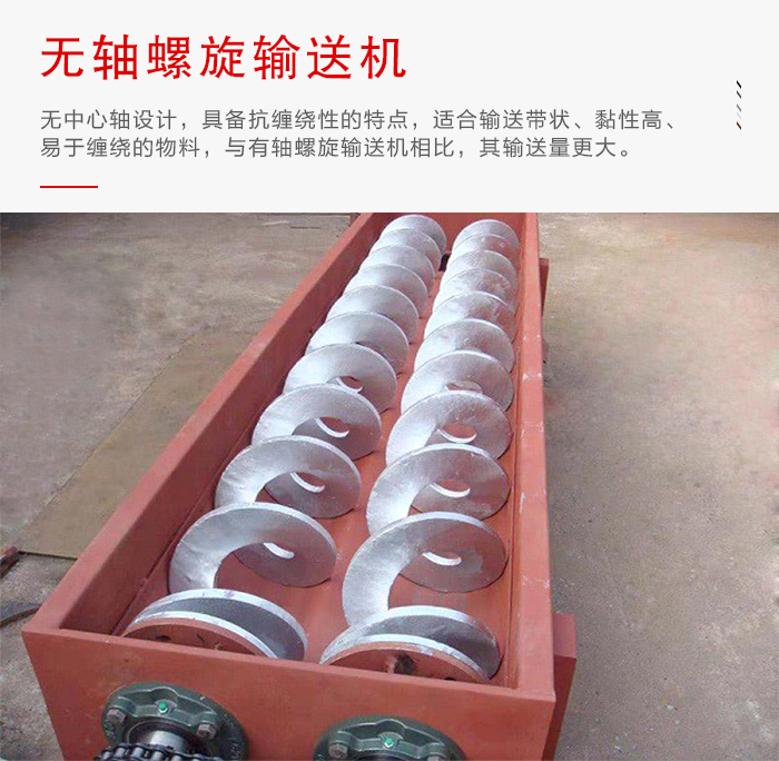 簡(jiǎn)介:無(wú)軸螺旋輸送機(jī)采用了無(wú)中心軸設(shè)計(jì),具備防纏繞性,可以用于輸送粘性強(qiáng)、纏繞性物料