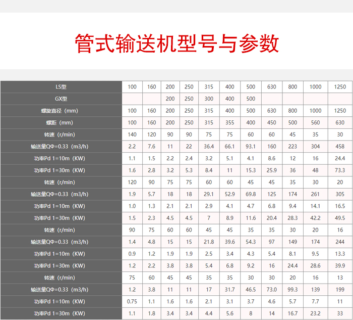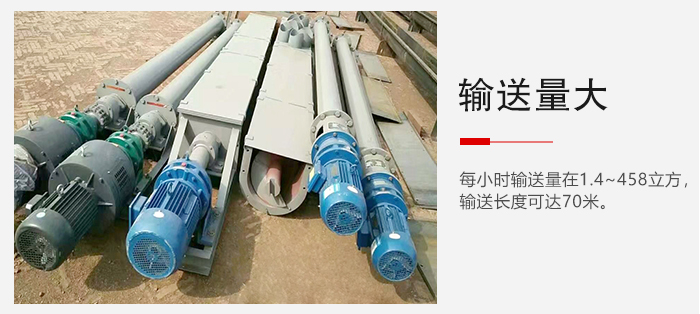 2、每小時(shí)輸送量在1.4~458立方,輸送長度可達(dá)70米,輸送量大;