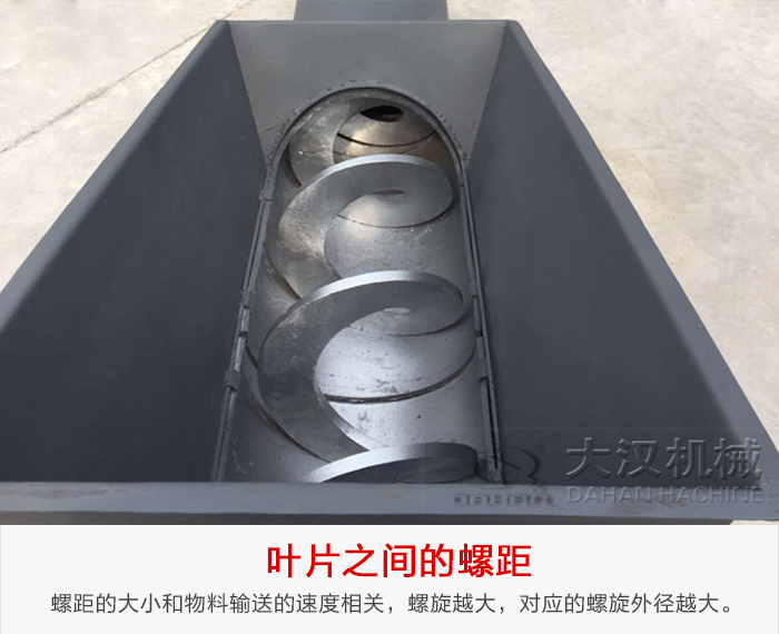 當(dāng)螺旋軸轉(zhuǎn)動時(shí),由于物料的重力及其與槽體壁所產(chǎn)生的摩擦力,使物料只能在葉片的推送下沿著輸送機(jī)的槽底向前移動,其情況好像不能旋轉(zhuǎn)的螺母沿著旋轉(zhuǎn)的螺桿作平移運(yùn)動一樣。
